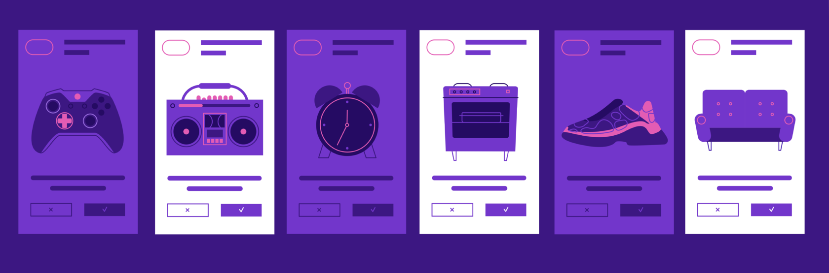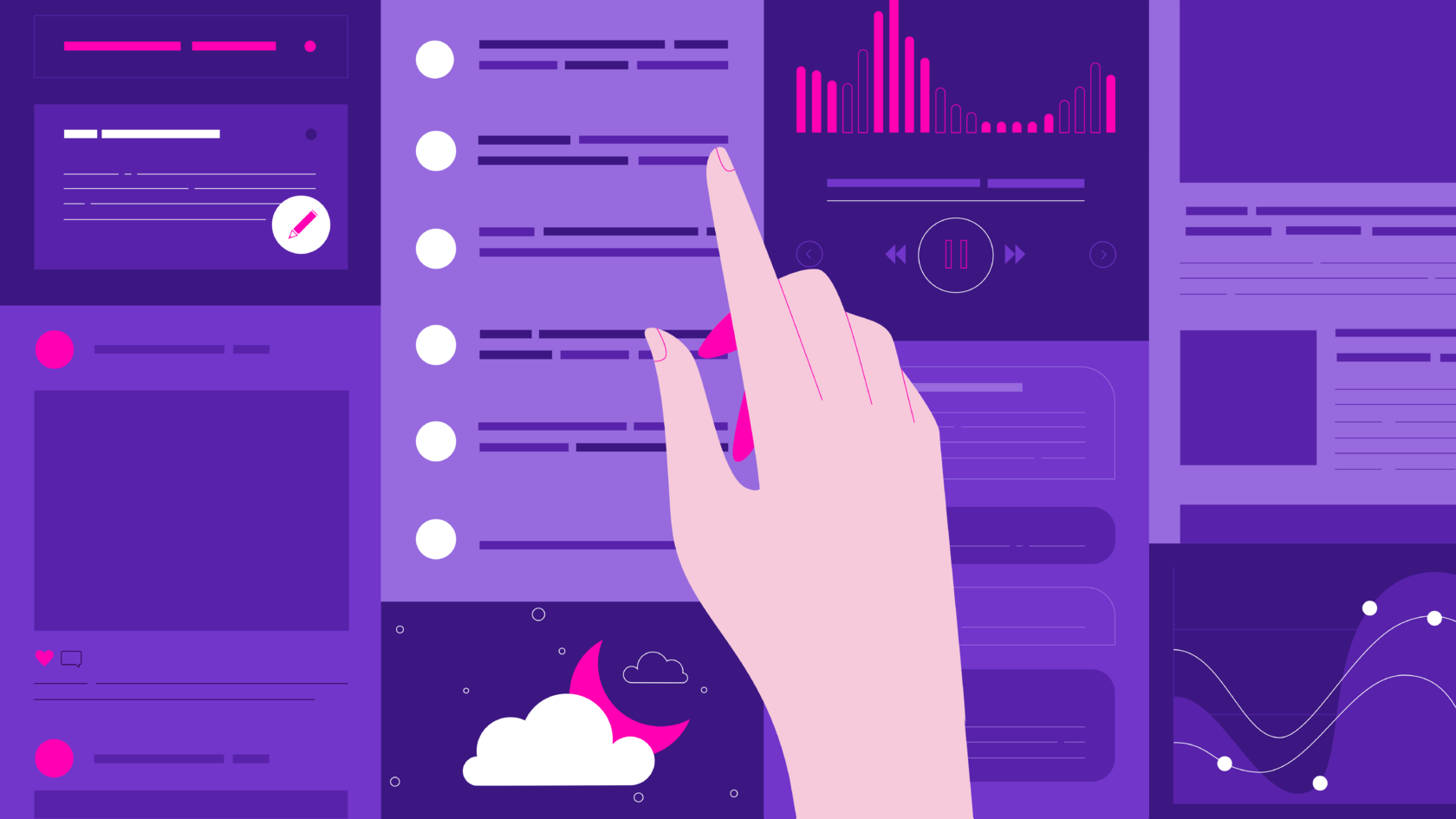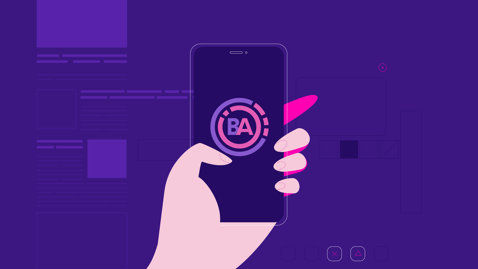 We built the mood board to illustrate possible styles, so the client could have a clearer perception of the final product. While searching for a visual language, we decided that the key style elements would be outlines, contrast, accents, and depth. Having chosen the style and color palette in line with the primary branding colors of BannerApp, we moved on to the illustration stage.
